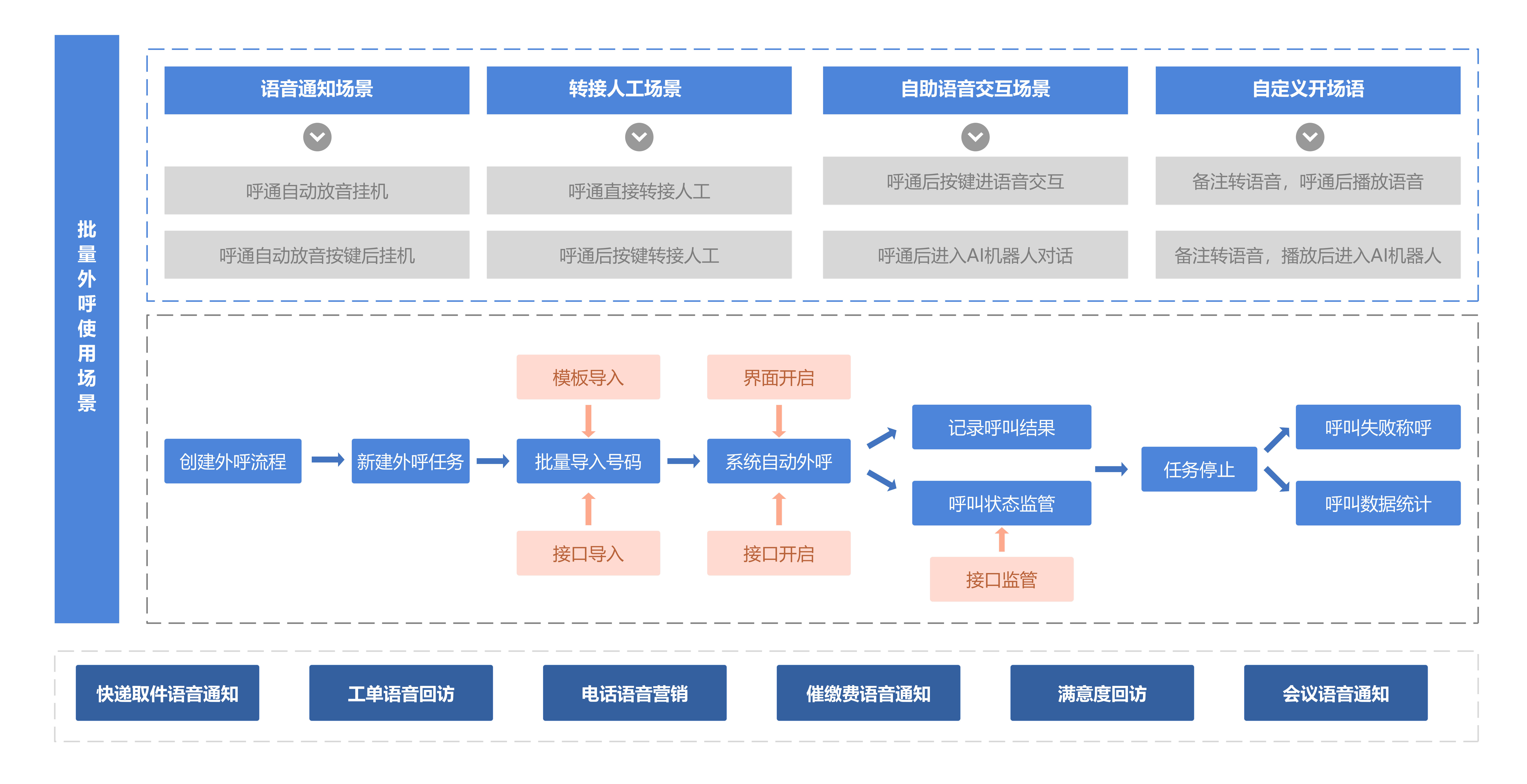 批量外呼任务自带操作界面,同时提供对接融合开发接口