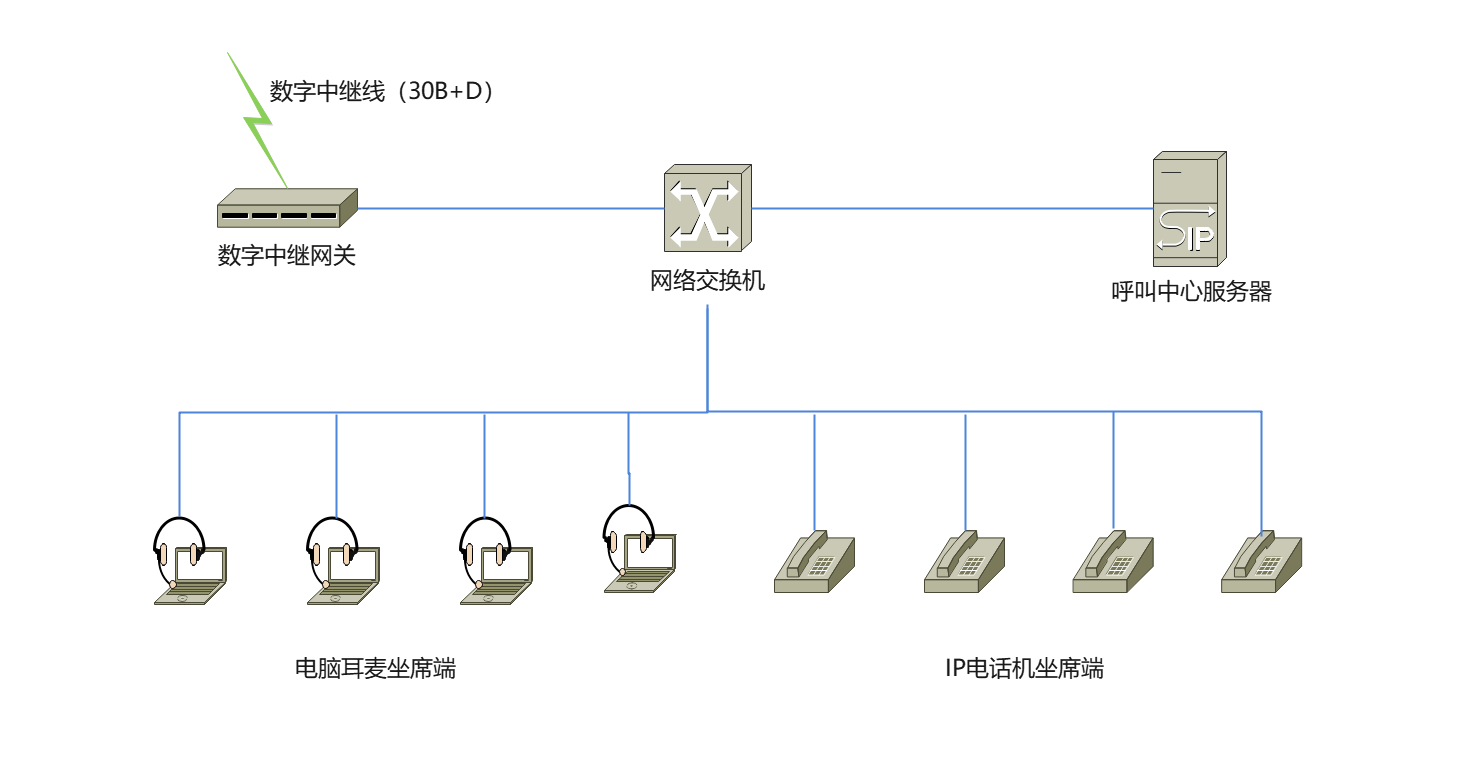 E1数字中继线是电话运营商(电信,移动,联通,铁通等)给企业拉的电话数字专线。一条数字专线最大支持30路的并发通话。适合中型、大型呼叫中心系统。