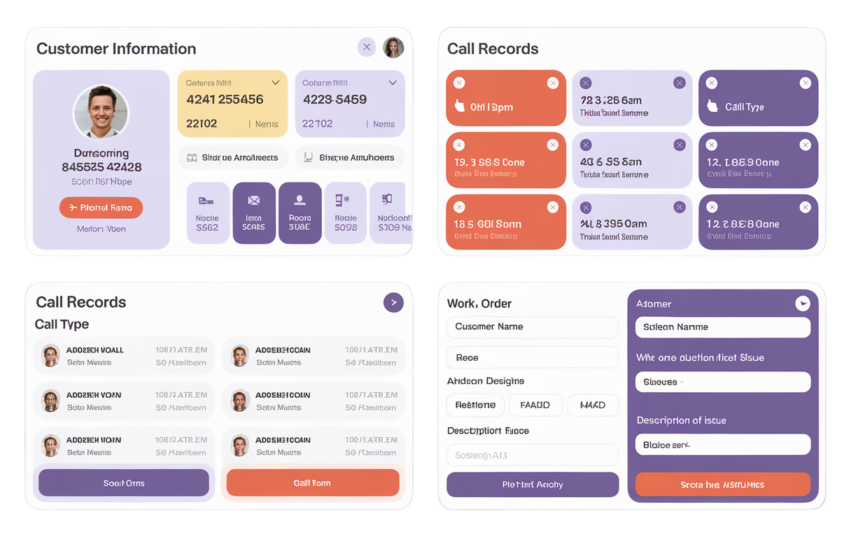 面,展示客户资料、历史通话信息、工单界面等,帮助坐席快速处理工